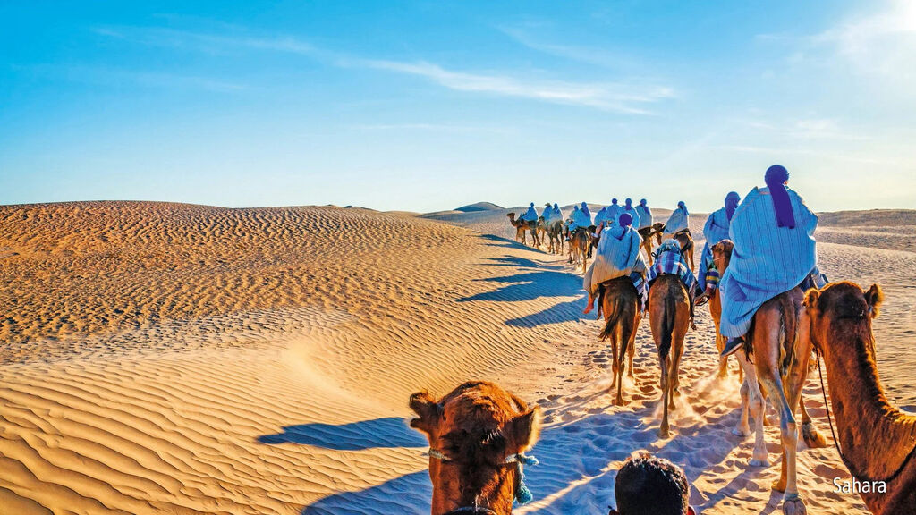 Snídaně. Přejezd do MATMATY, známé svými tradičními domy a měsíční krajinou, což přimělo George Lucase a jeho nástupce, aby zde natočili mnoho scén filmové ságy „Star Wars“. Součástí programu je návštěva domova Berberů - původních obyvatel této oblasti Afriky. Přejezd do města DOUZ, zelené oázy na okraji pouště, zvané jako Brány do Sahary. Oběd. Fakultativně (za příplatek na místě): jízda na velbloudech v poušti. Přejezd a krátká zastávka u největšího slaného jezera v Tunisku CHOTT EL JERID, jehož hladina je pokryta tenkou vrstvou soli a třpytí se na slunci. Přejezd do TOZEUR -- města ležícího mezi dvěma solnými jezery, které je zároveň největší oázou Tuniska, ve které se hojně pěstují datle, hlavně odrůda „Deglet el Nour “, jedny z nejlepších datlí na světě. Ubytování v hotelu, večeře, nocleh.