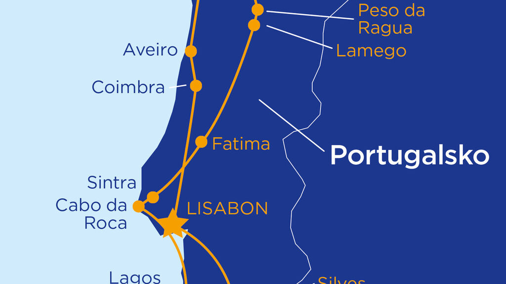 Obecné Informace:Lisabon | Coimbra | Aveiro | Porto | Guimaraes | Braga | Peso da Régua | Lamego | Fátima | Sintra | Cabo de Roca | Silves | Lagos | mys svatého Vincence | Algarve